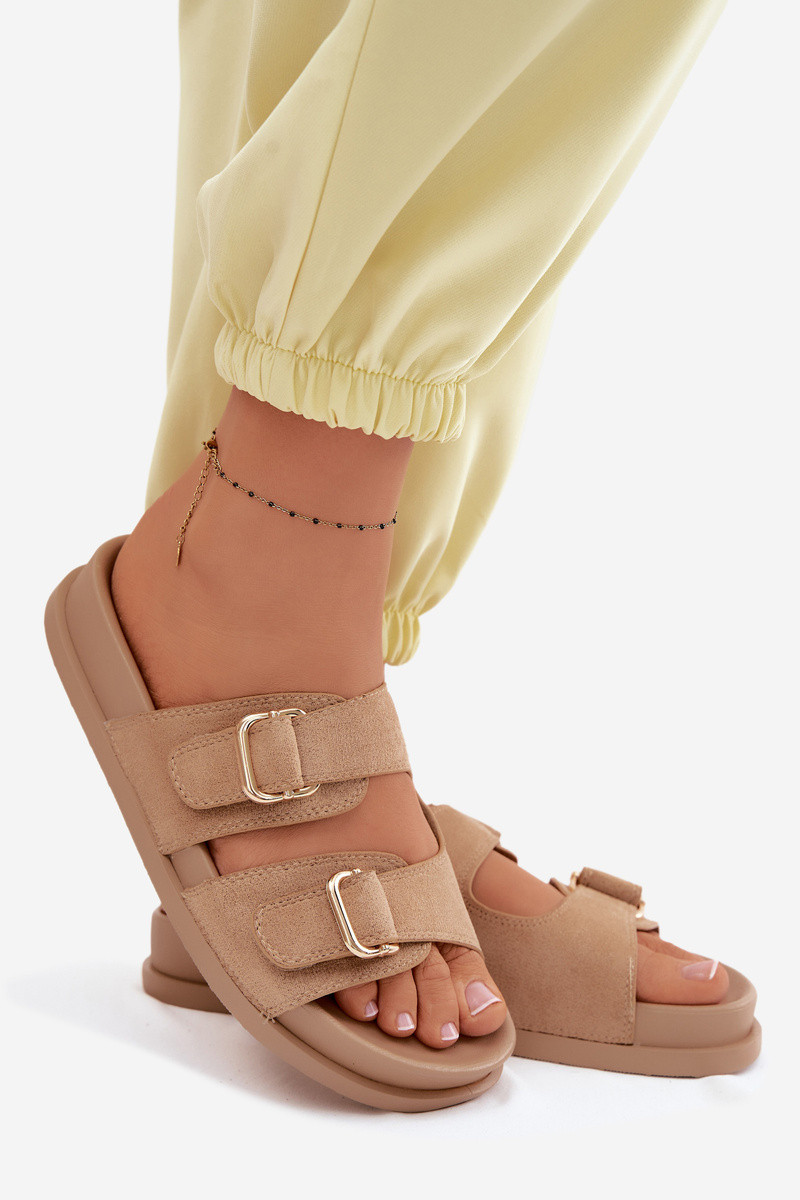 Damespantoffels Ze gouden kleurmi met gespenmi beige Pelorin