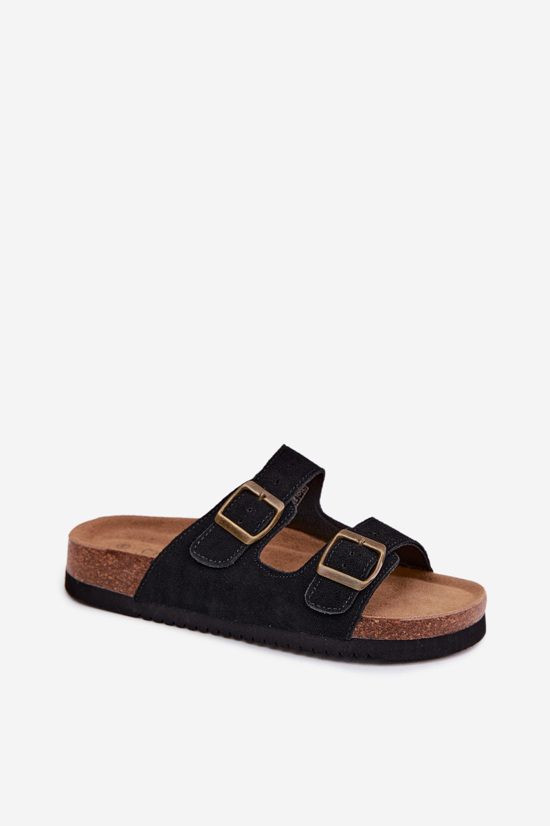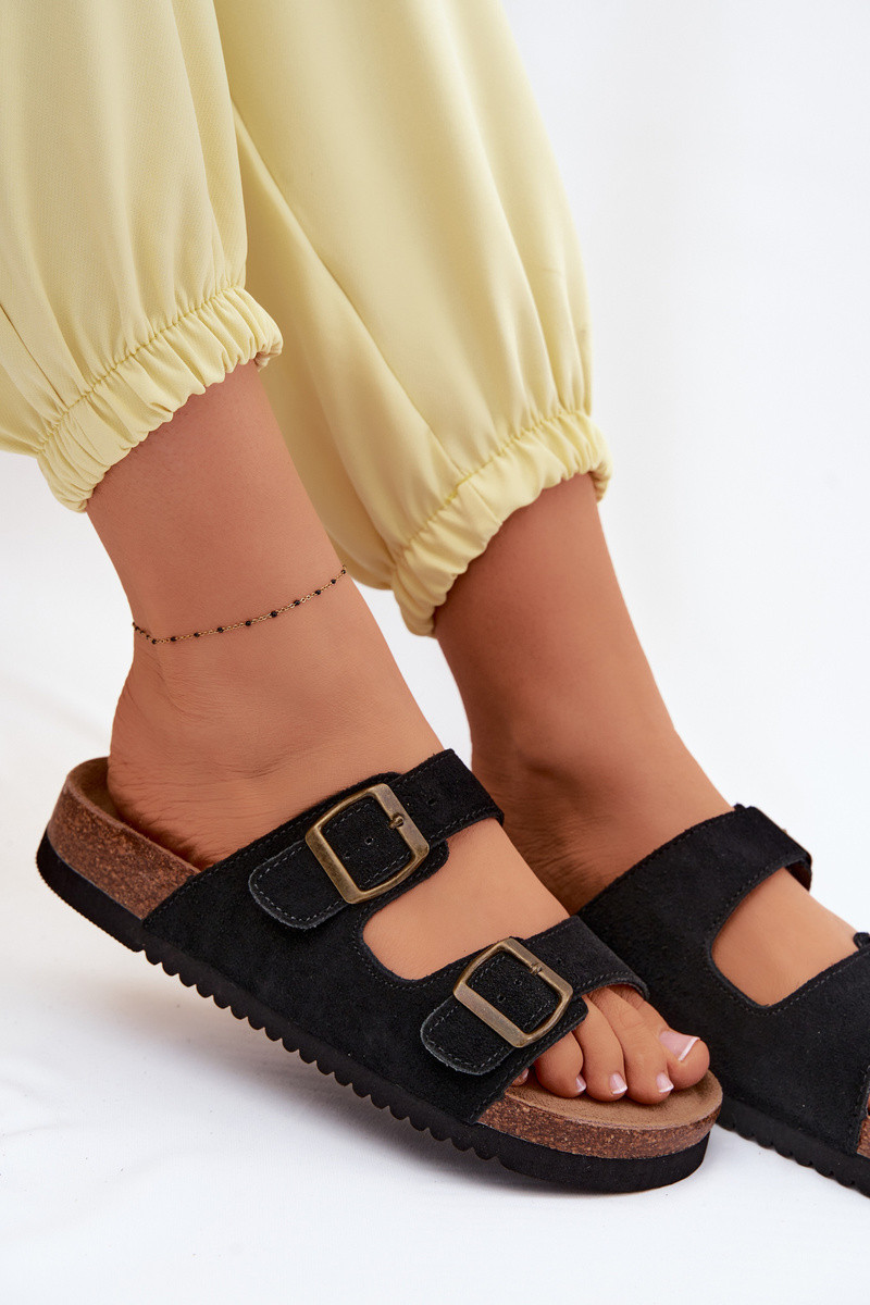 Zandkleurige leren slippers met gespen Rosaliae