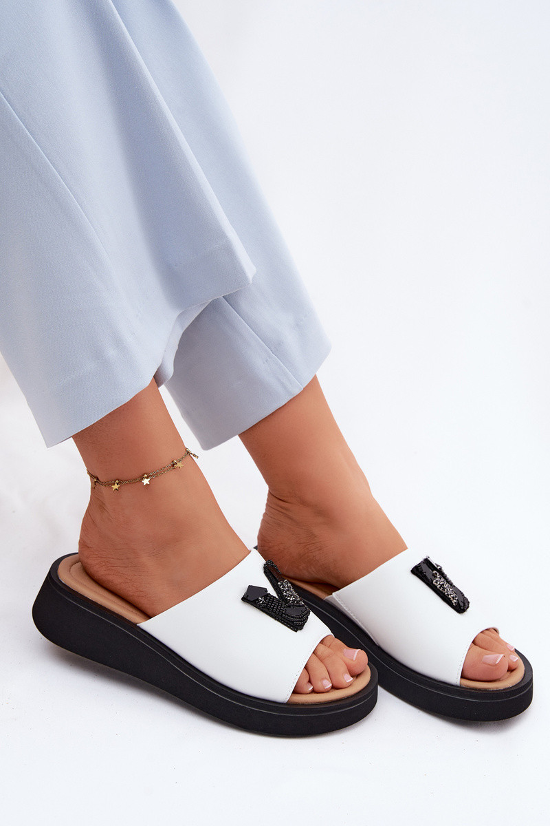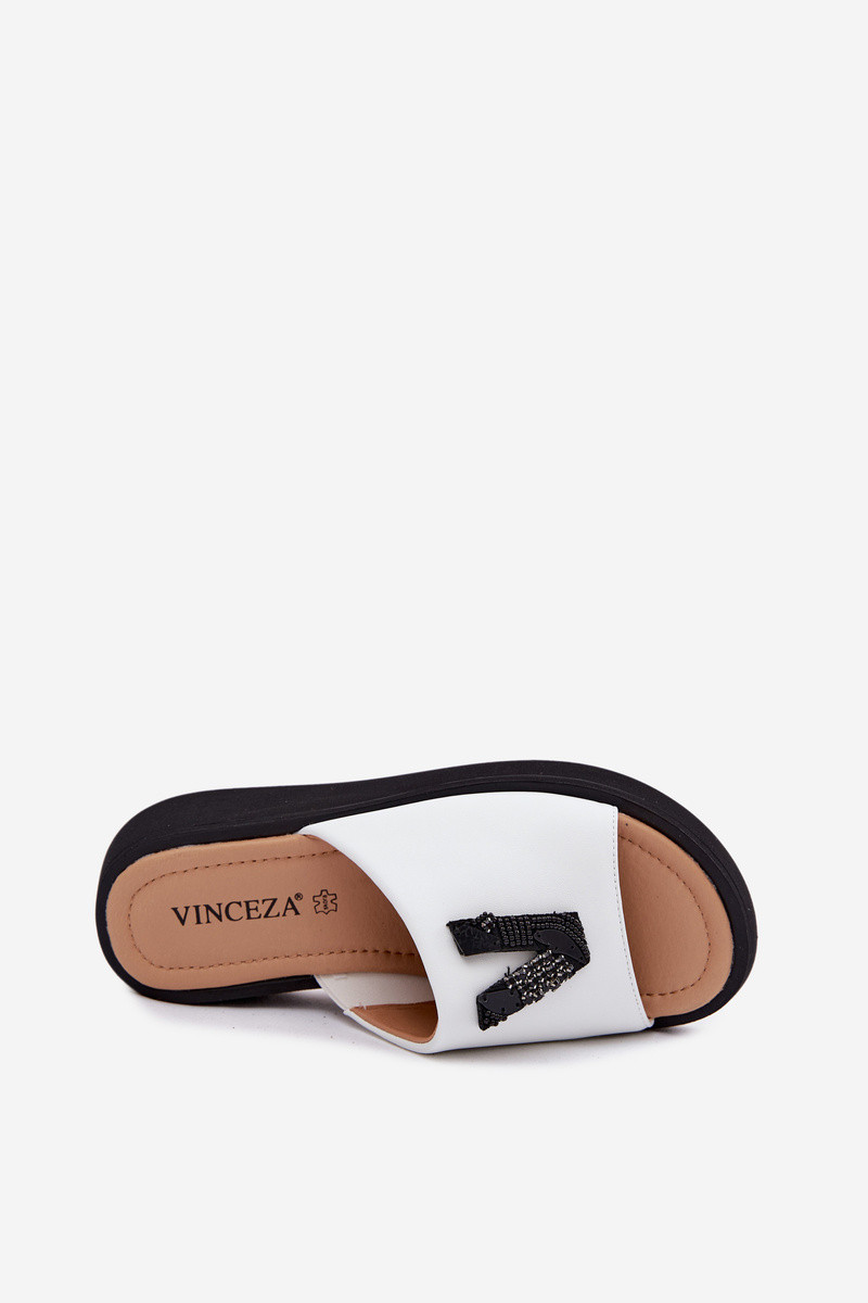 Leren dames slippers met V-vormige bovenkant op platform Vinceza 66950, zandkleur