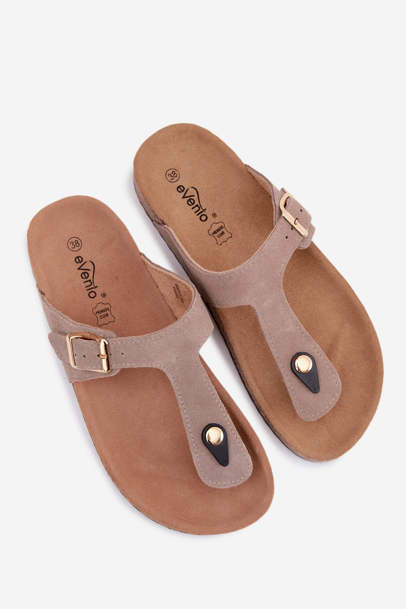Leer Suede pantoffels Slippers met gouden gespen beige Honey