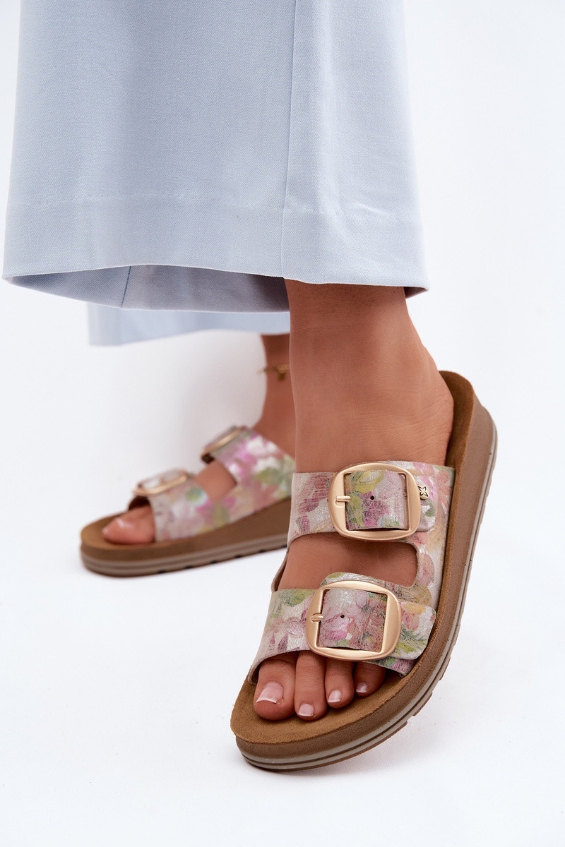 Leren pantoffels Met patroon met gespen Het heeftciejka P7537-39 Verschillende kleuren