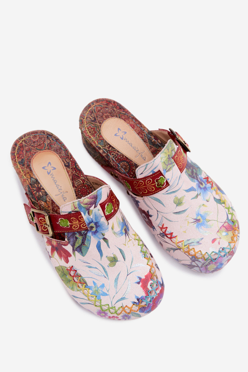 Leren pantoffels Mule Dames met platform met bloemen Het heeftciejka K7409-15 Verschillende kleuren