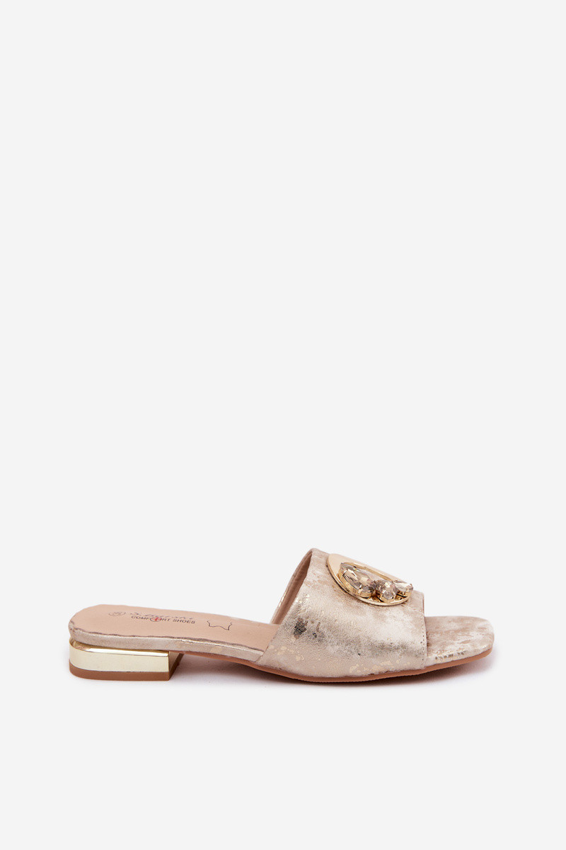 Damespantoffels met brede hakken met ornamenten KV61-6025 gouden kleur