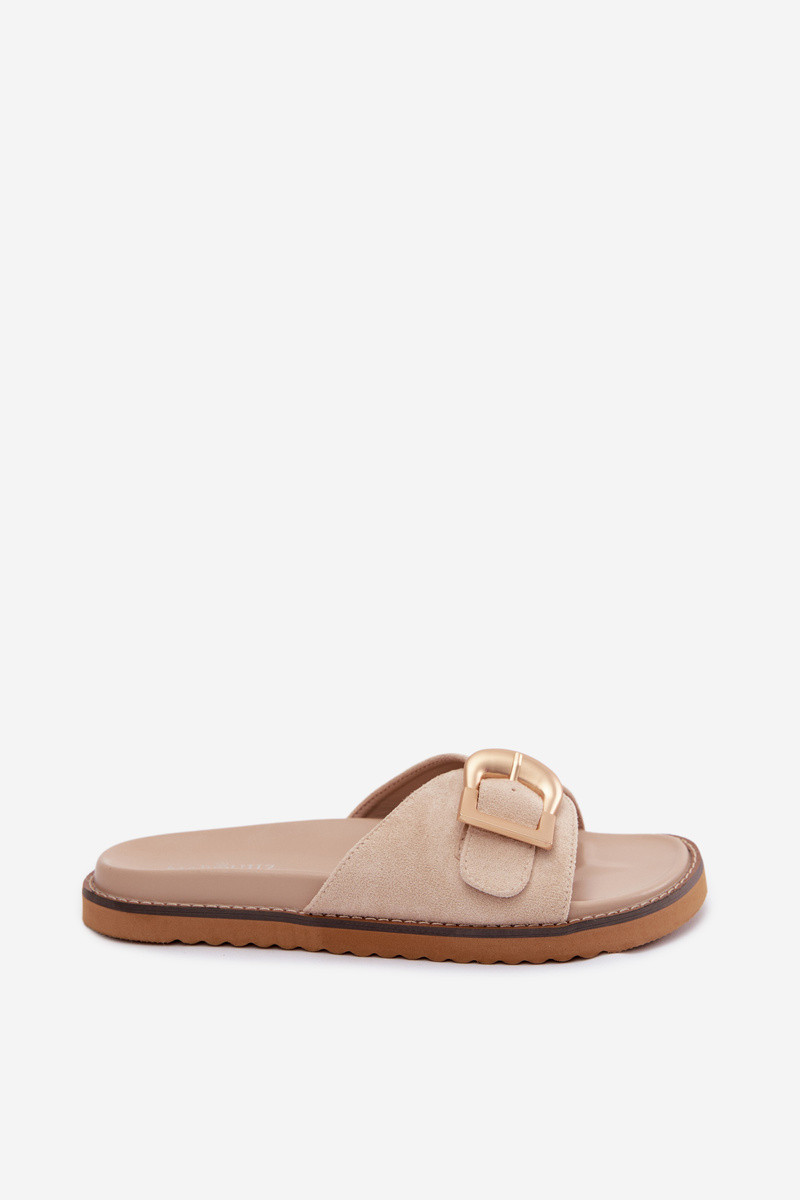 Ivory kleurige dames slippers met gouden gespen Elviane