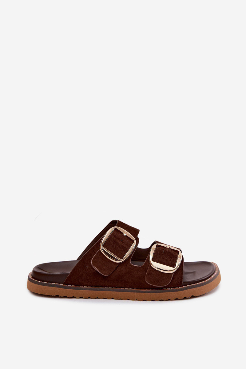 Dames slippers van faux suede met gouden gespen Czekolado Averia