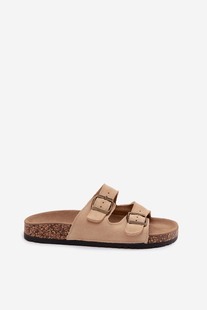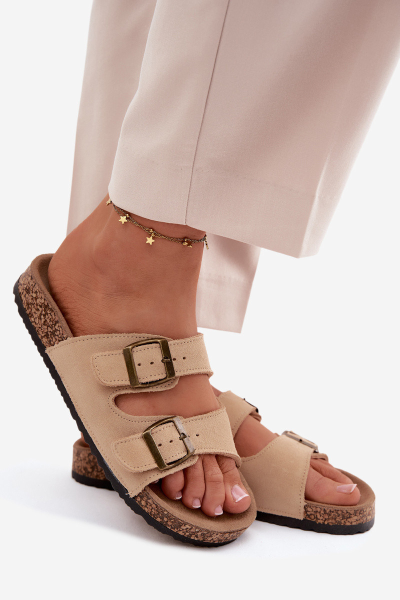 Suede pantoffels Op een kurkzool met gespen beige Tavira