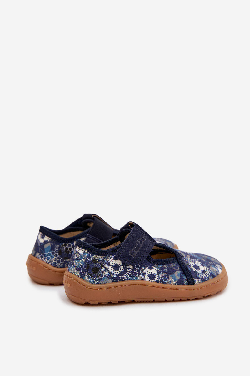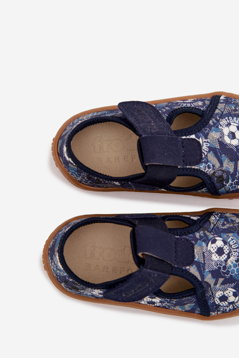 Kinderpantoffels met klittenbandsluitingen Barefoot met ballen Froddo Canvas G1700439-5 blauwe kleur