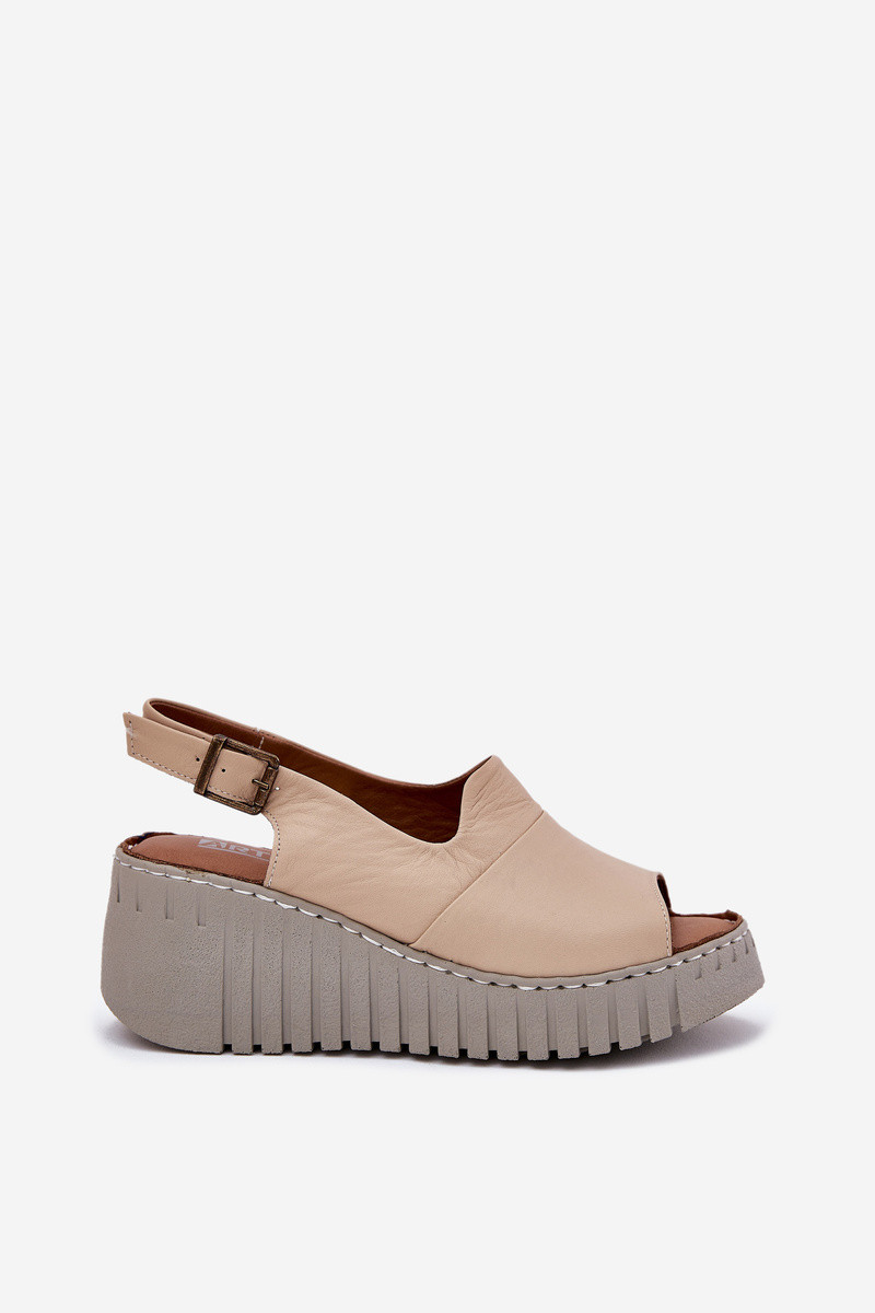 Zandkleurige dames sandalen van natuurlijk leer op platform, Artiker 56C0957