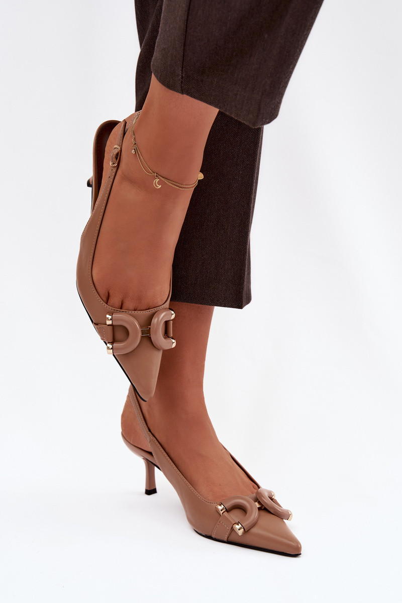 Dames sandalen met dunne hakken Met sierlijk Detalem bruine kleur Brienne