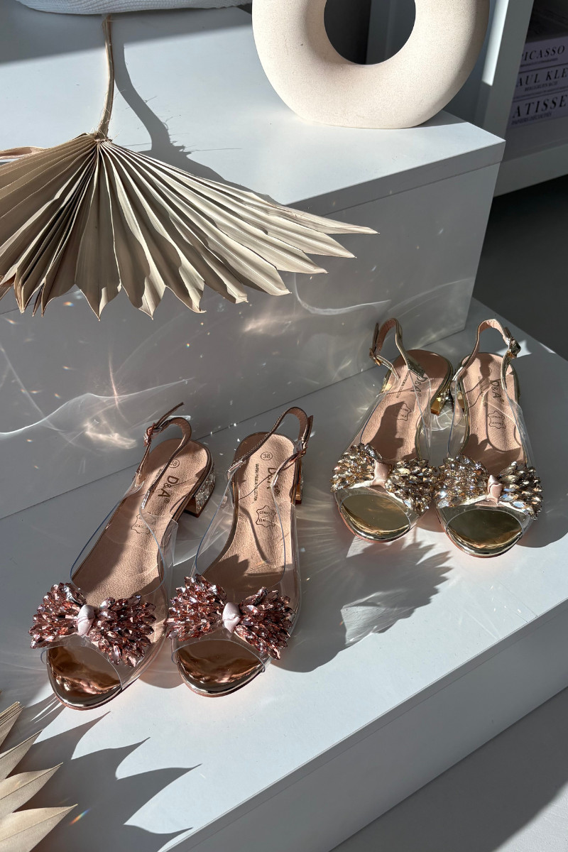 Roségouden transparante sandalen D&A MR52-231 met strikken