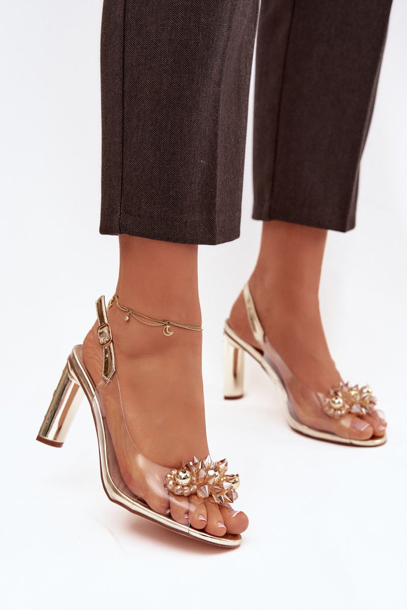 Gouden transparante sandalen D&A MR52-232 met hakken en mooie details