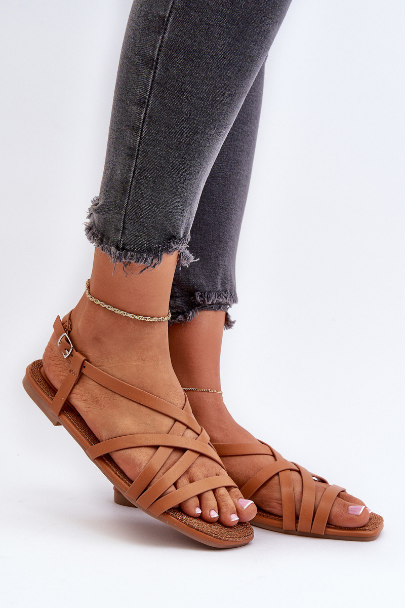 Dames platte sandalen Big Star NN274013 in bruine kleur
