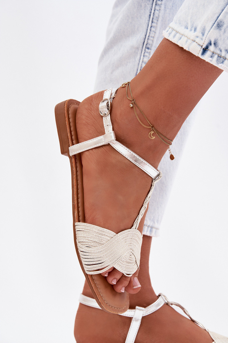 Vlakke sandalen voor dames zilveren kleur Nexora