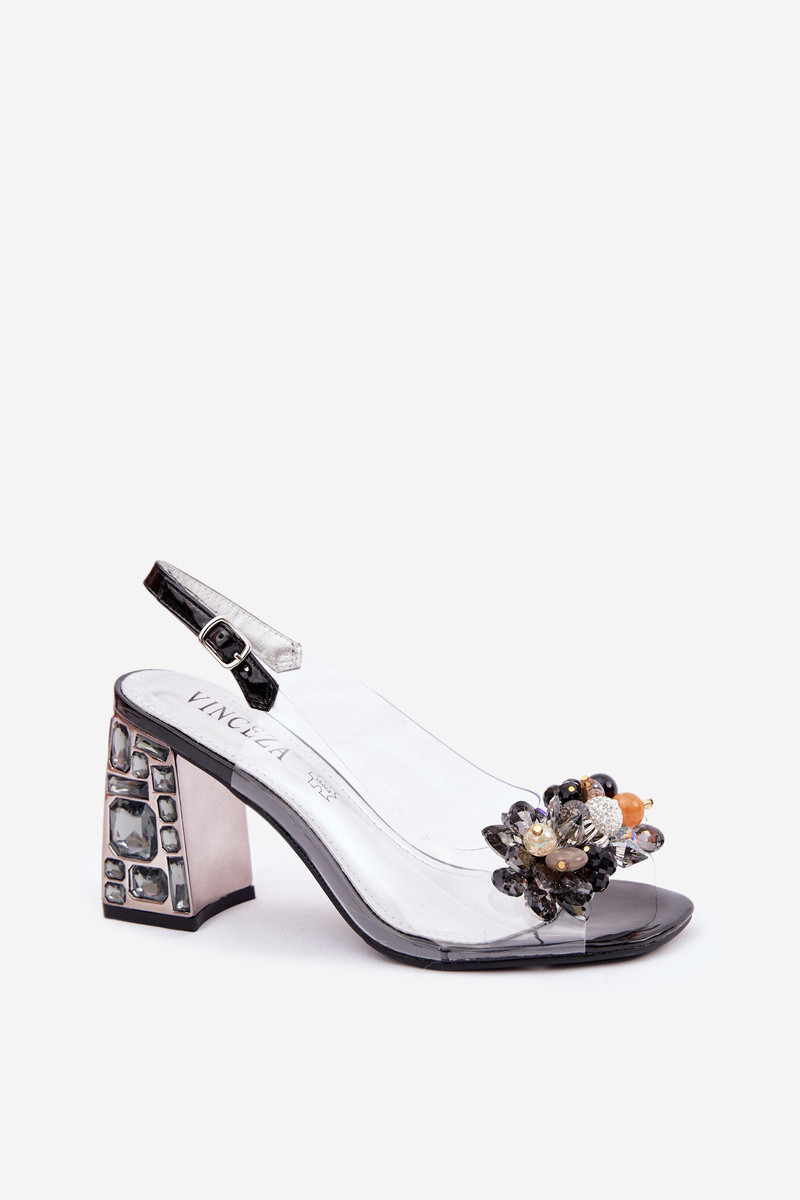 Transparante sandalen met hakken en glinsterende steentjes Vinceza 70121 in zwart