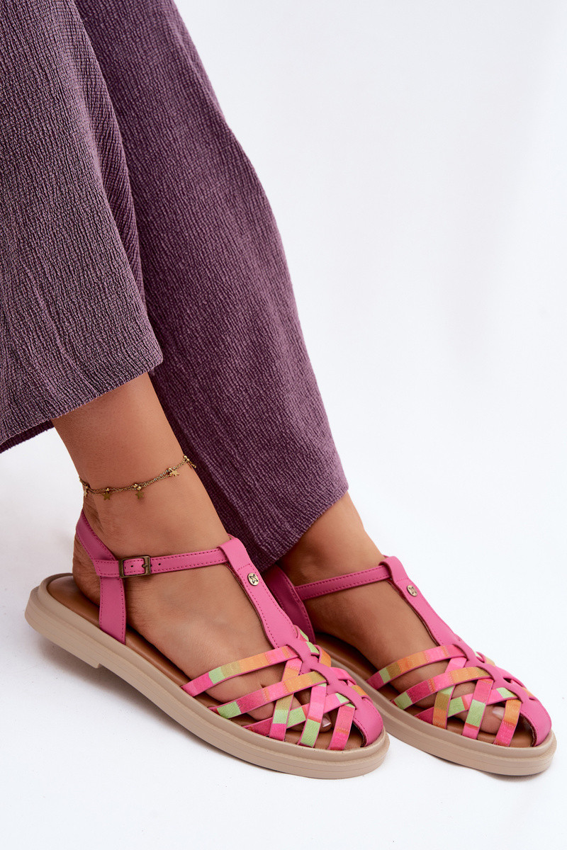 Leren platte sandalen voor vrouwen met bandjes in roze