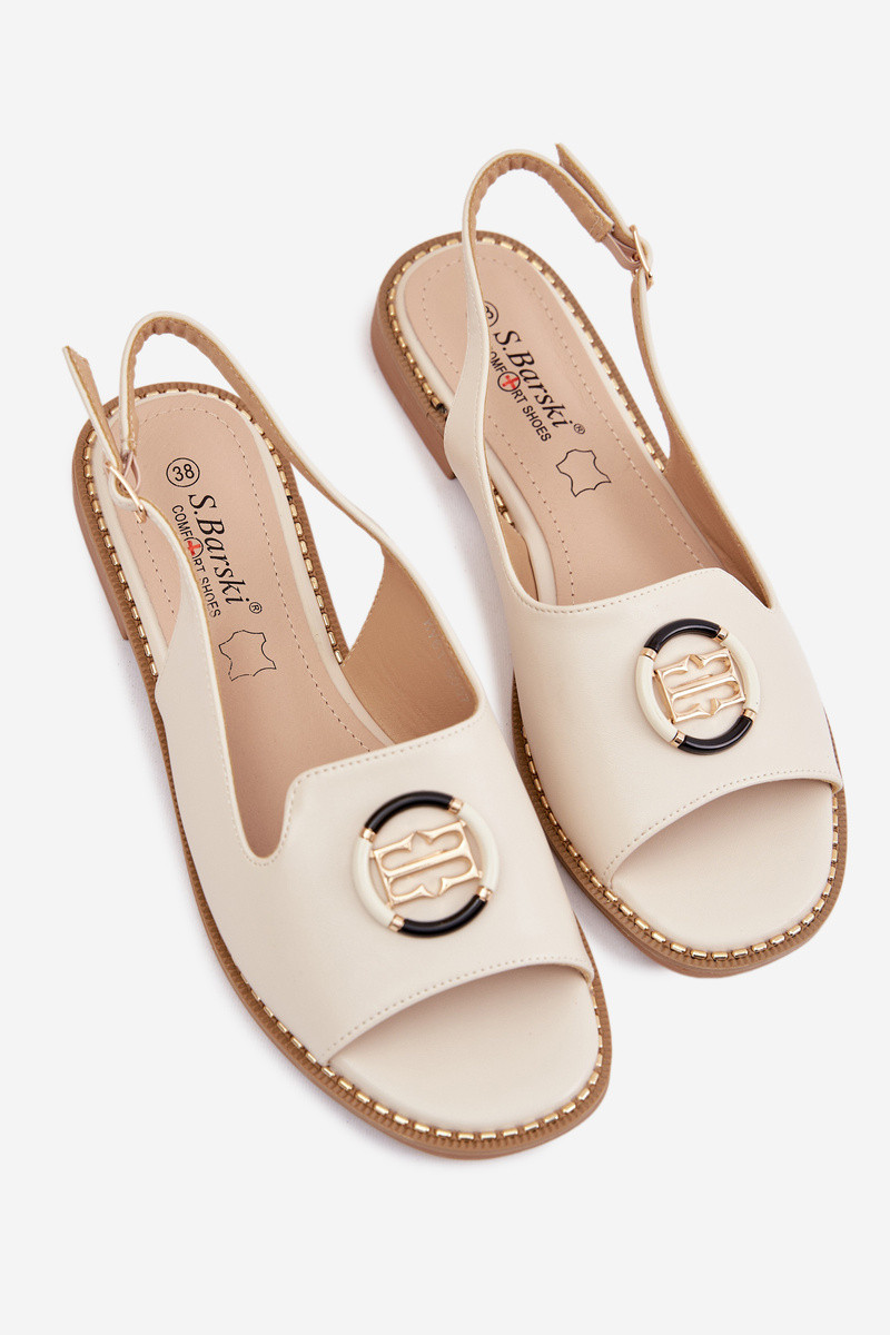 Dames sandalen met brede hakken en ornamenten S.Barski KV61-6037 crèmekleur