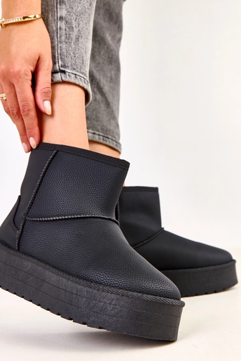 Zwarte lage sneeuwlaarzen met platform van kunstleer, Reinol