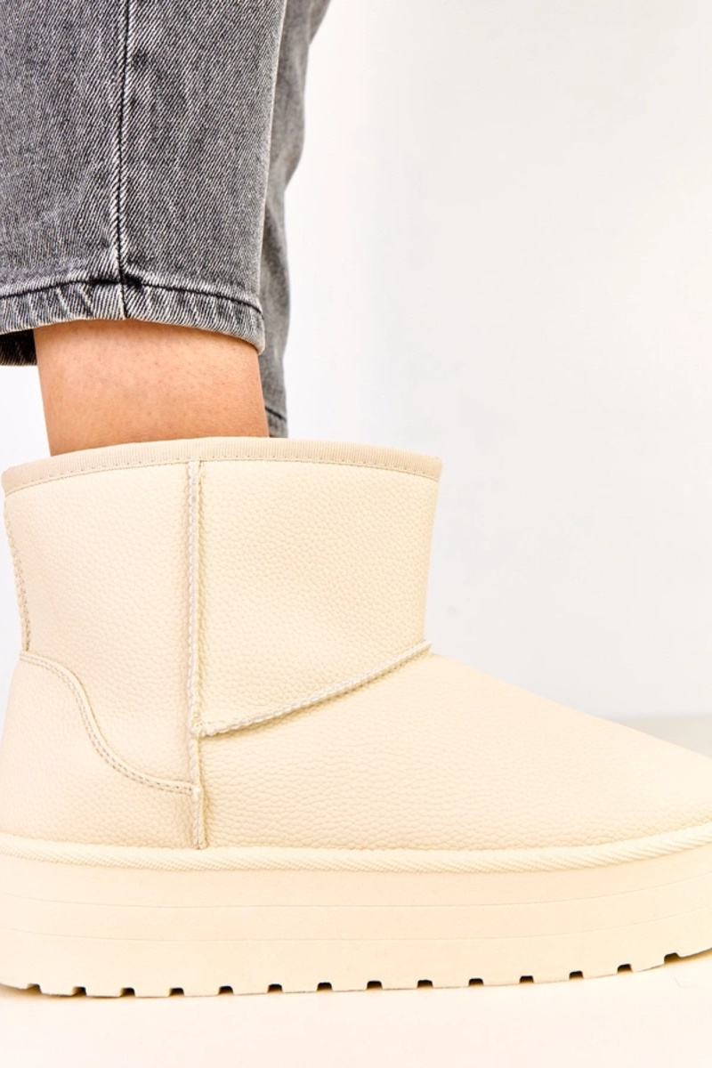 Zandkleurige lage sneeuwlaarzen met platform van kunstleer, Reinol