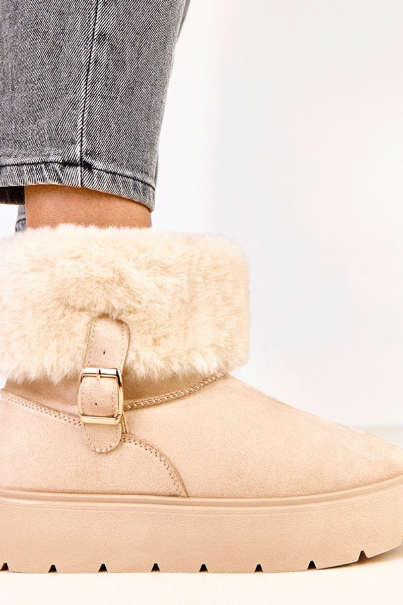 Zandkleurige sneeuwlaarzen met platform versierd met een gesp, Salini