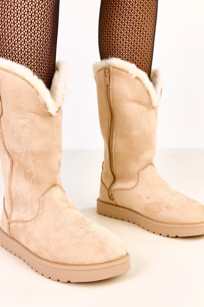 Beige sneeuwlaarzen met borduurwerk op de schacht Darena