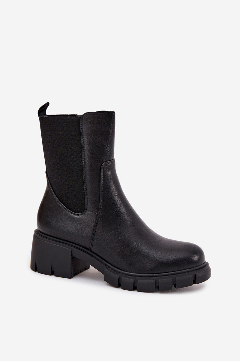 Dames enkellaarsjes van kunstleer, zwarte kleur Kyra