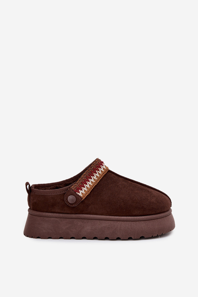 Sneeuwlaarzen voor dames laag met bewegende riempjes en borduurwerk, met platform chocolade Lyrisse