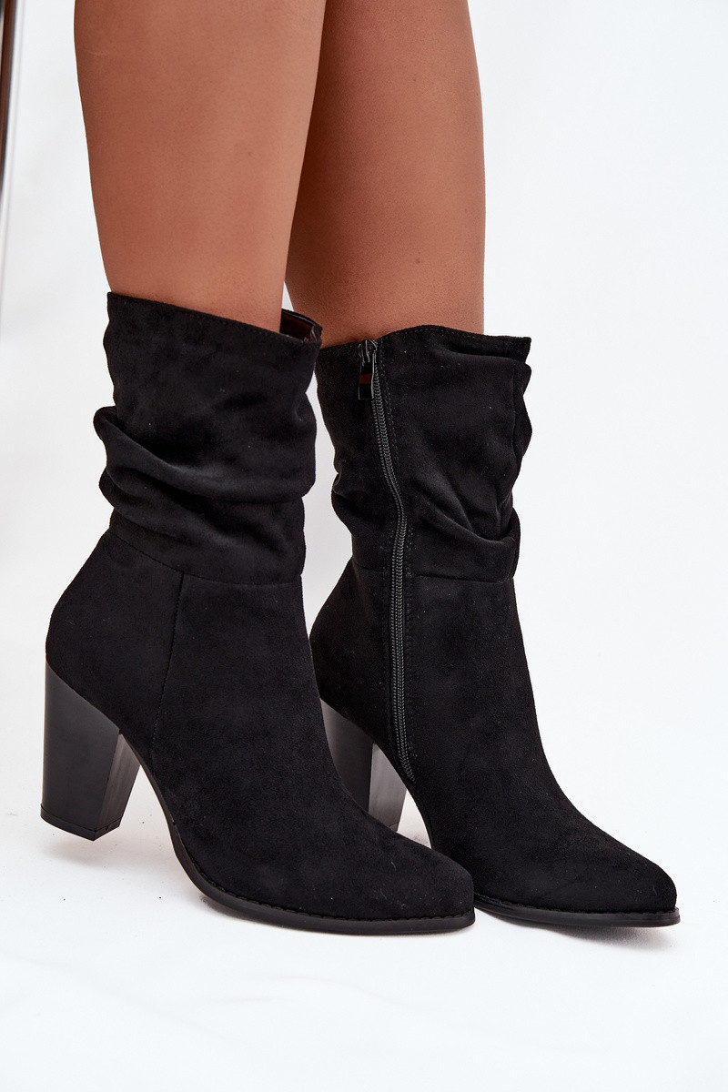 Dames enkellaarzen „Jovessa" met rimpelingen, zwart