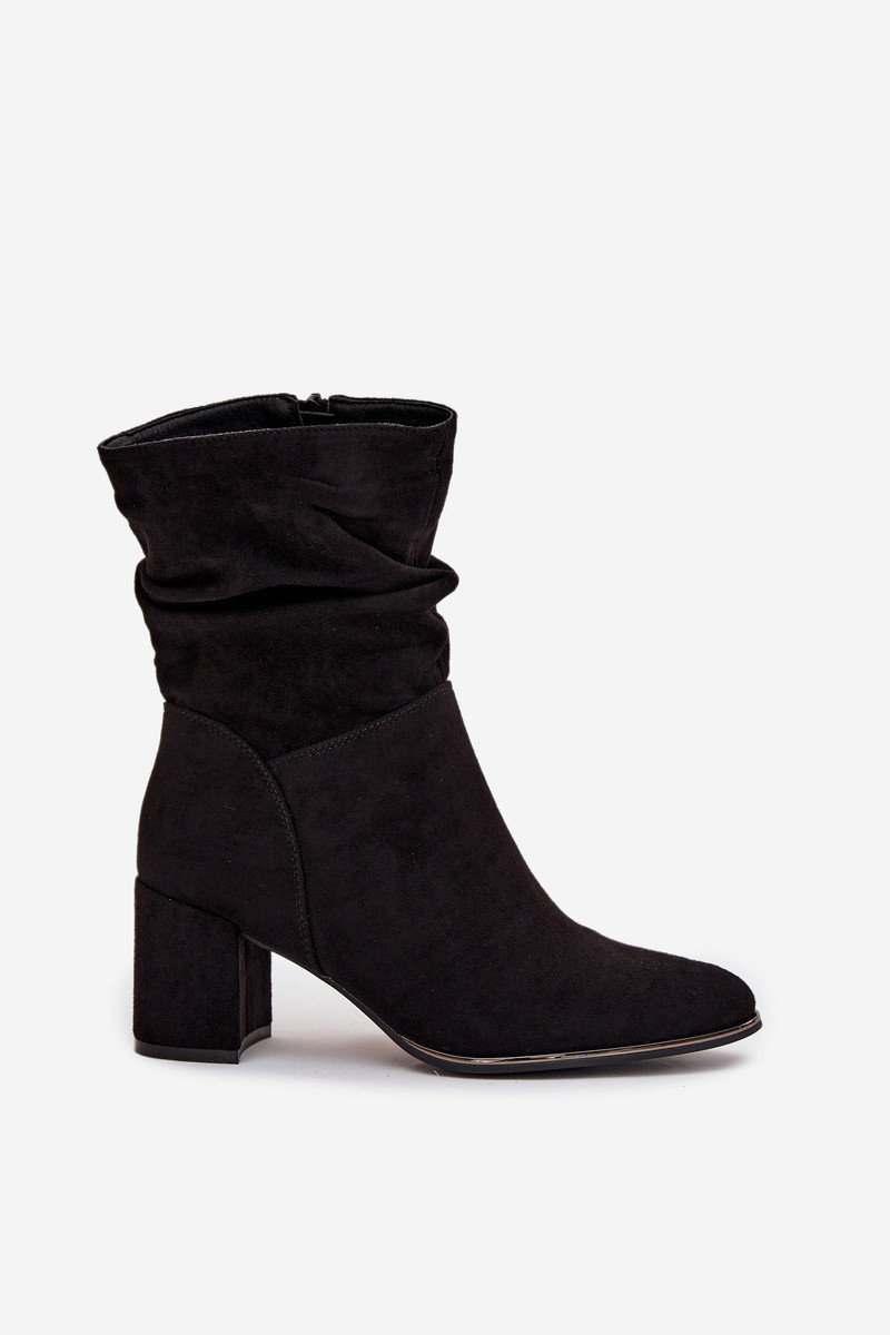 Gewatteerde dames zwarte enkellaarsjes met ruffles op blokhak Ivressa