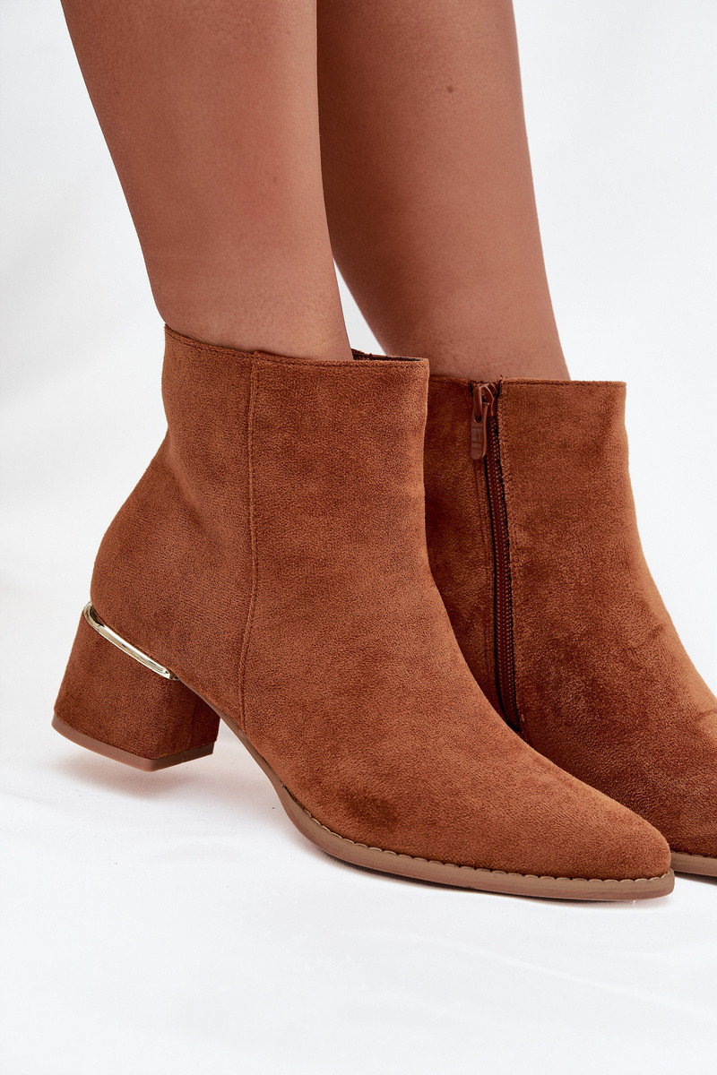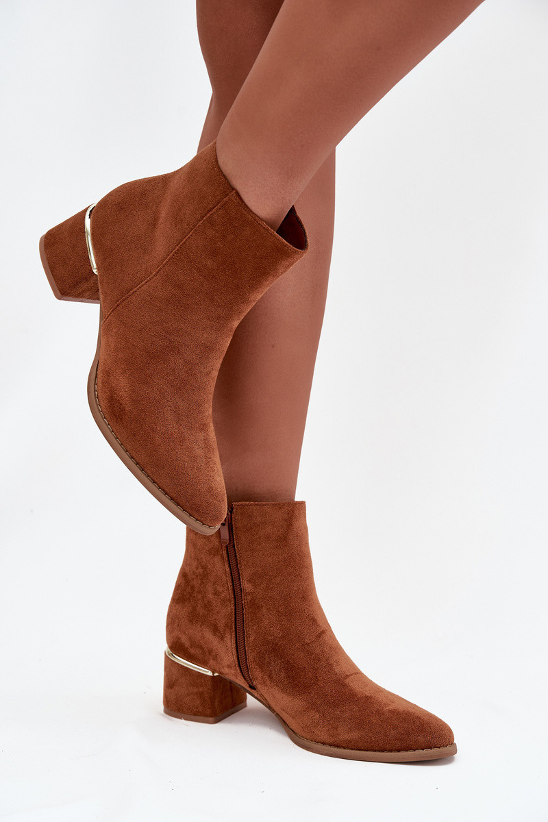 Gewatteerde dames bruine enkellaarsjes met hakjes en gouden accenten Nolessa