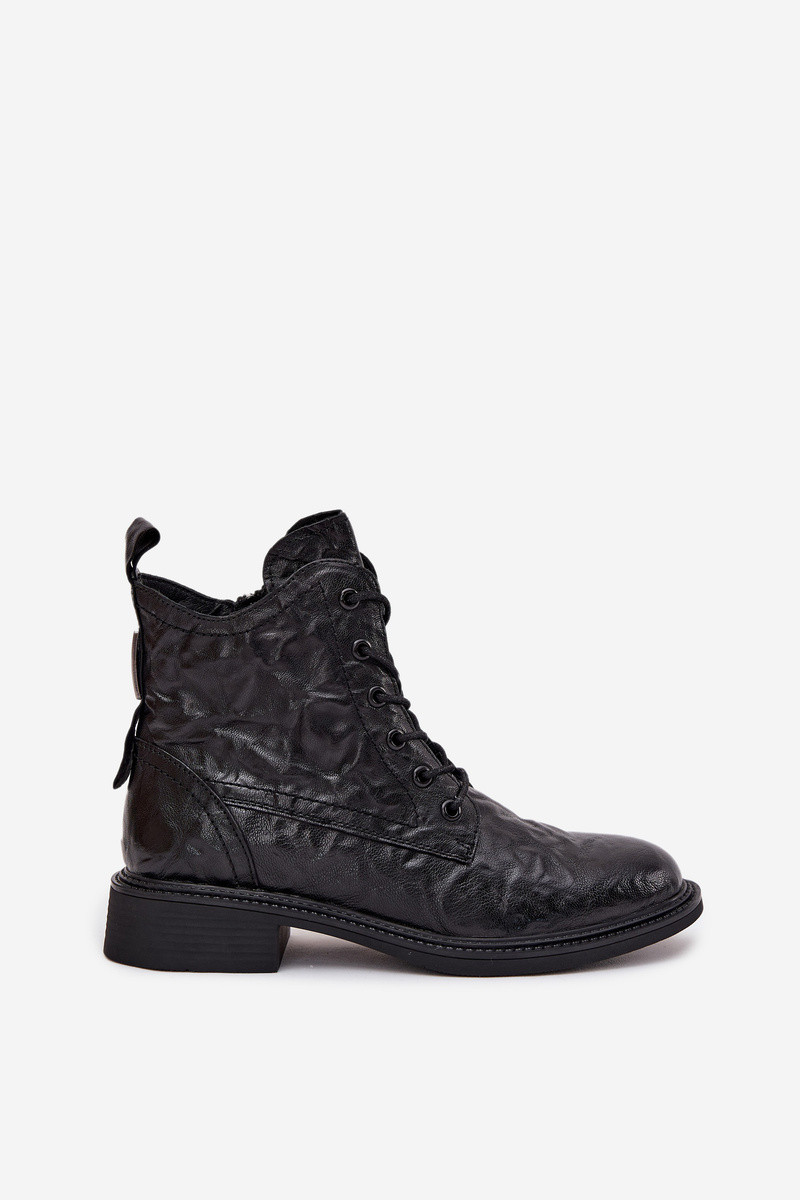 Gevoerde dames enkellaarsjes van natuurlijk leer Artiker 57C1006 zwarte kleur