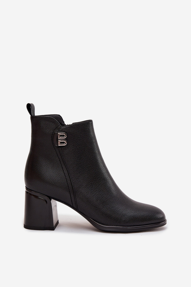 Gevoerde dames enkellaarsjes van natuurlijk leer met hakken in zwarte kleur Jovelle