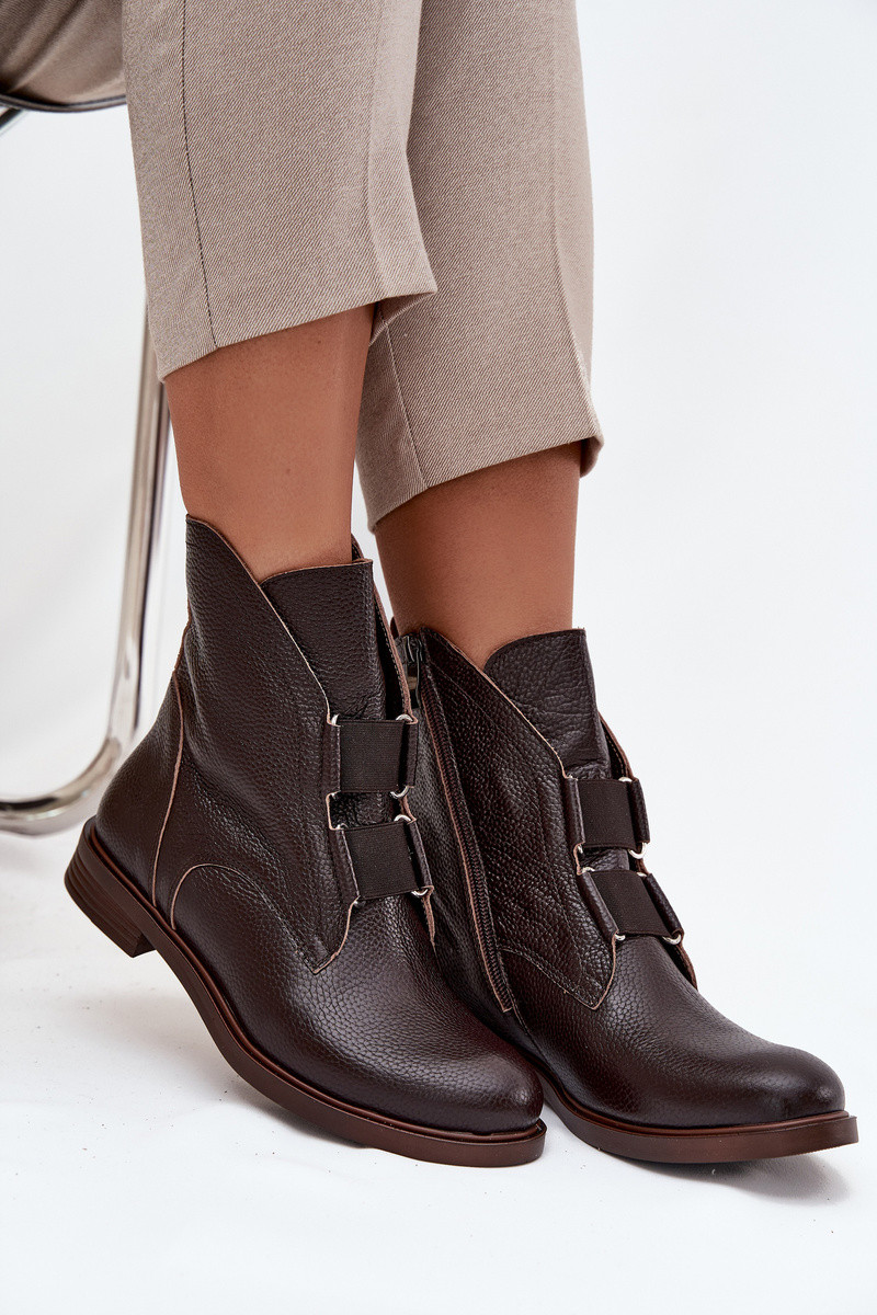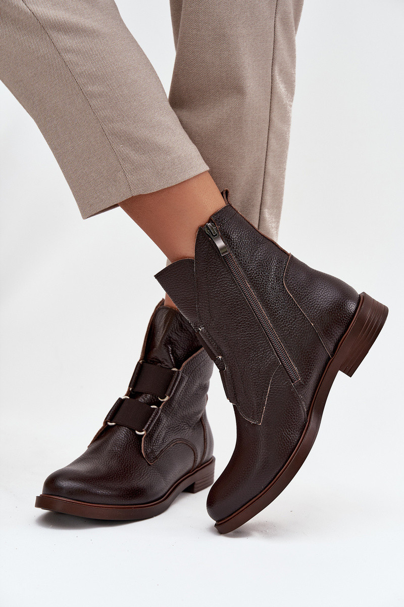 Dames leren enkellaarsjes met brede hakken Zazoo 3842 chocoladekleur
