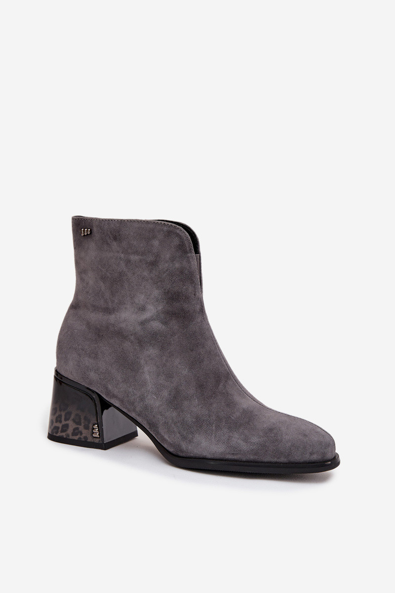 Gevoerde suède enkellaarsjes met hakken Vinceza 66806 grijze kleur