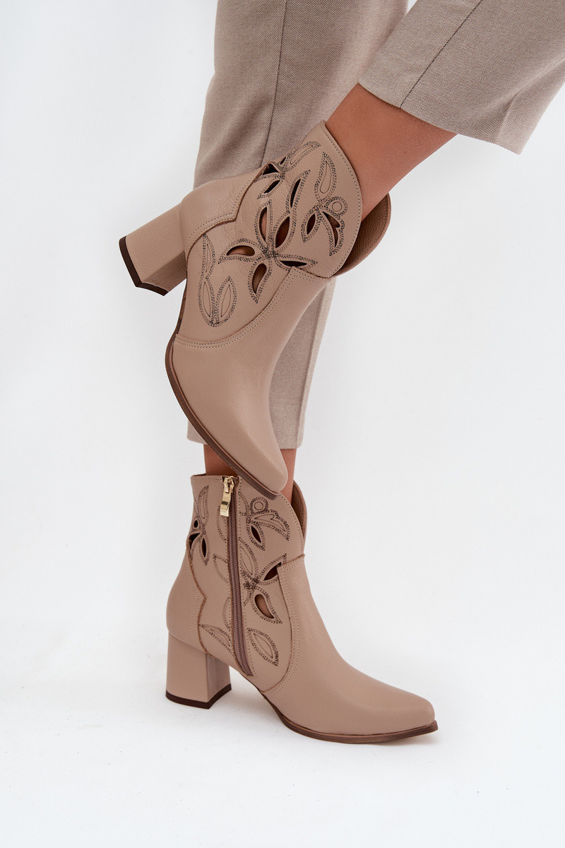 Leer met elementen van opengeInerkt Dameslaarzen Zazoo 3647 ivoor