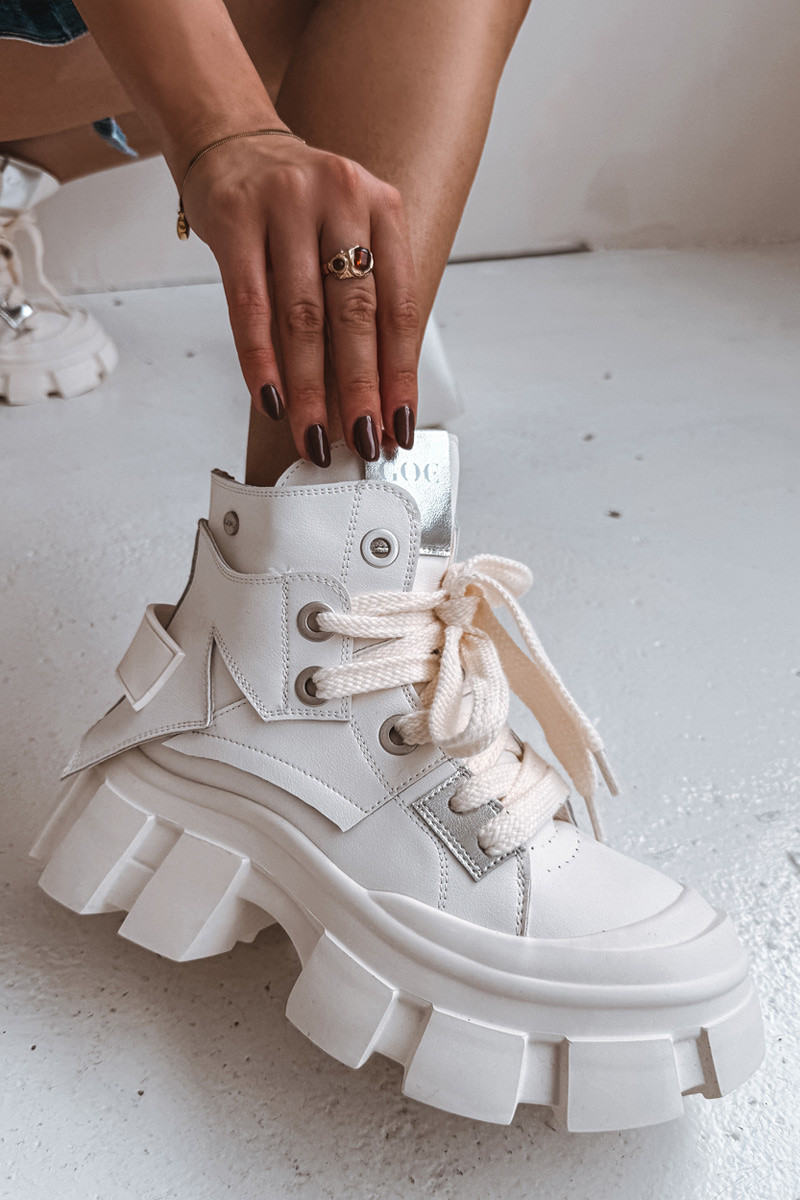 Leren gevoerde sportieve laarzen GOE SS2N4055 wit