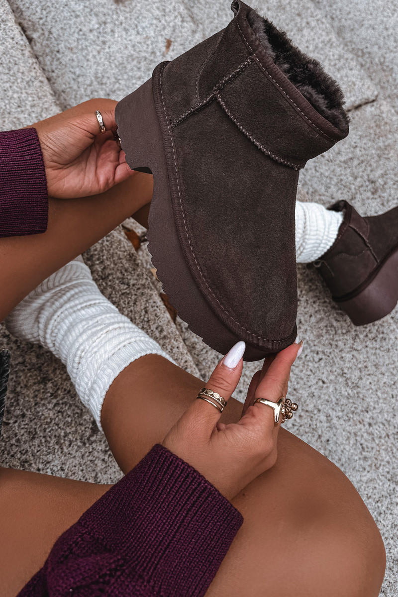 Dames sneeuwlaarzen van natuurlijk suède gevoerd met bont binnenin chocolade kleur Milora