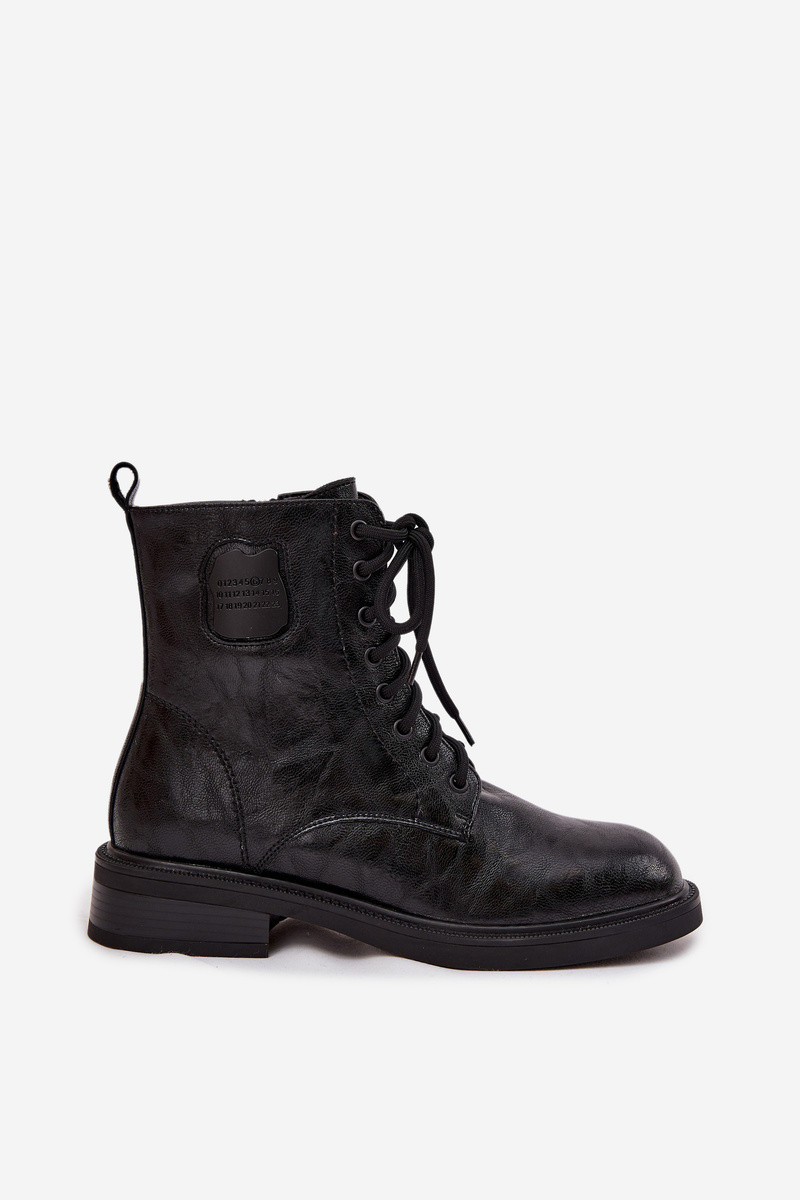 Leren werklaarzen voor dames met decoratieve details Tai turiciejka K7180-01 in zwart