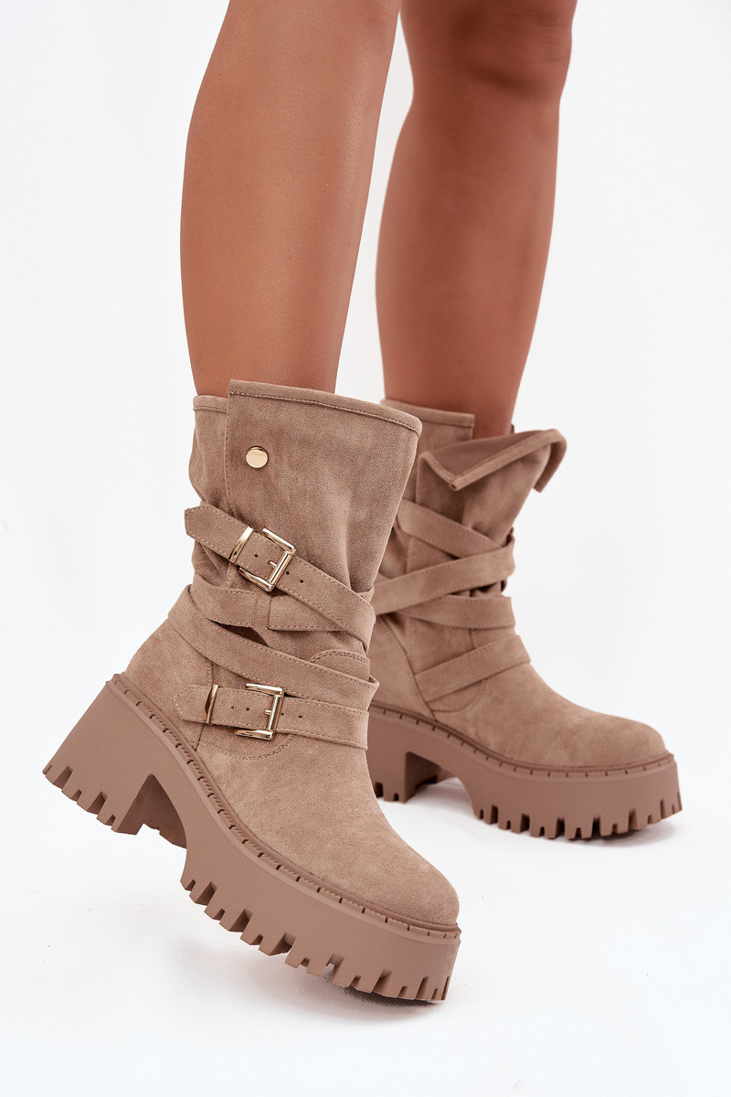 Dameslaarzen Op enorme hakken met gespen I Strepenem beige Nerelisa