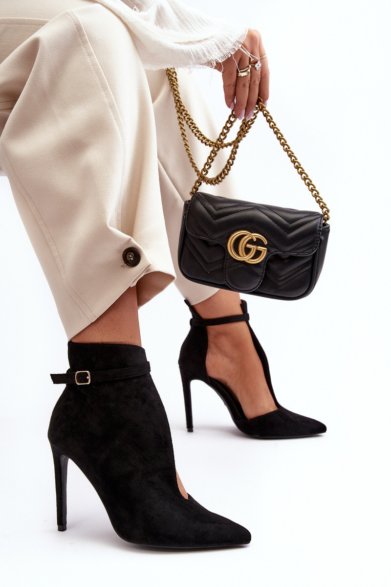 Zwarte suède dameslaarzen met dunne hakken Amalundi