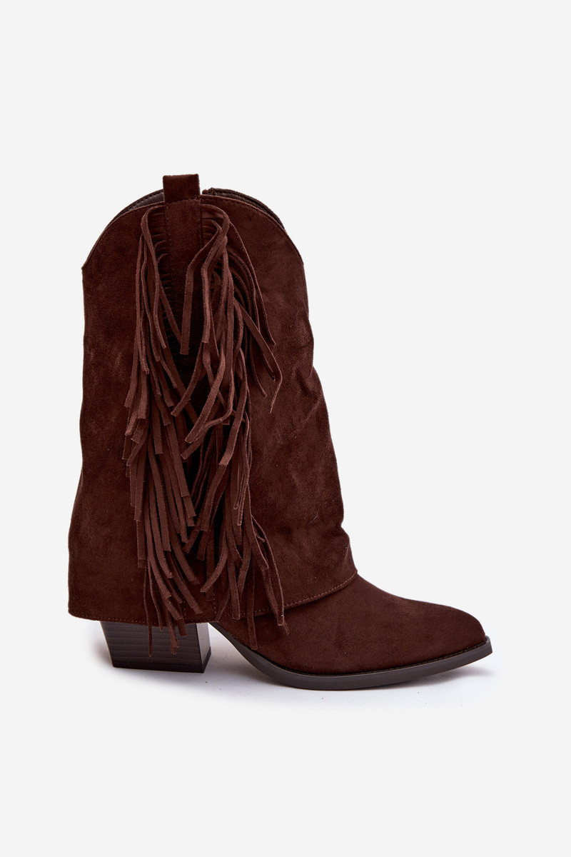 Bruine cowboy-stijl dameslaarzen met franjes en hakken Gralina