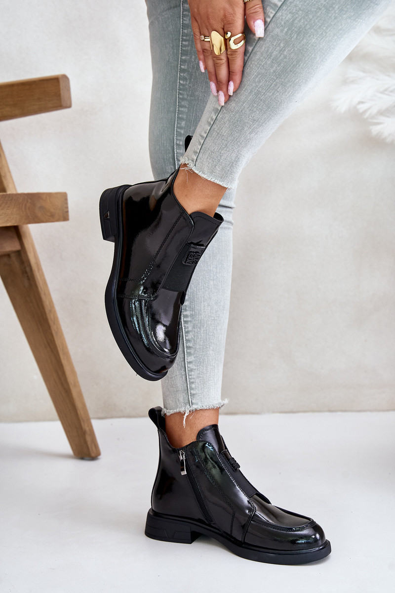 D&A JC42-24 leren instaplaarzen met lak effect zwart