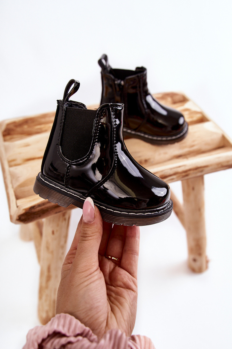 Verwarmde kinderlaarzen met lakeffect, zwarte kleur Porky