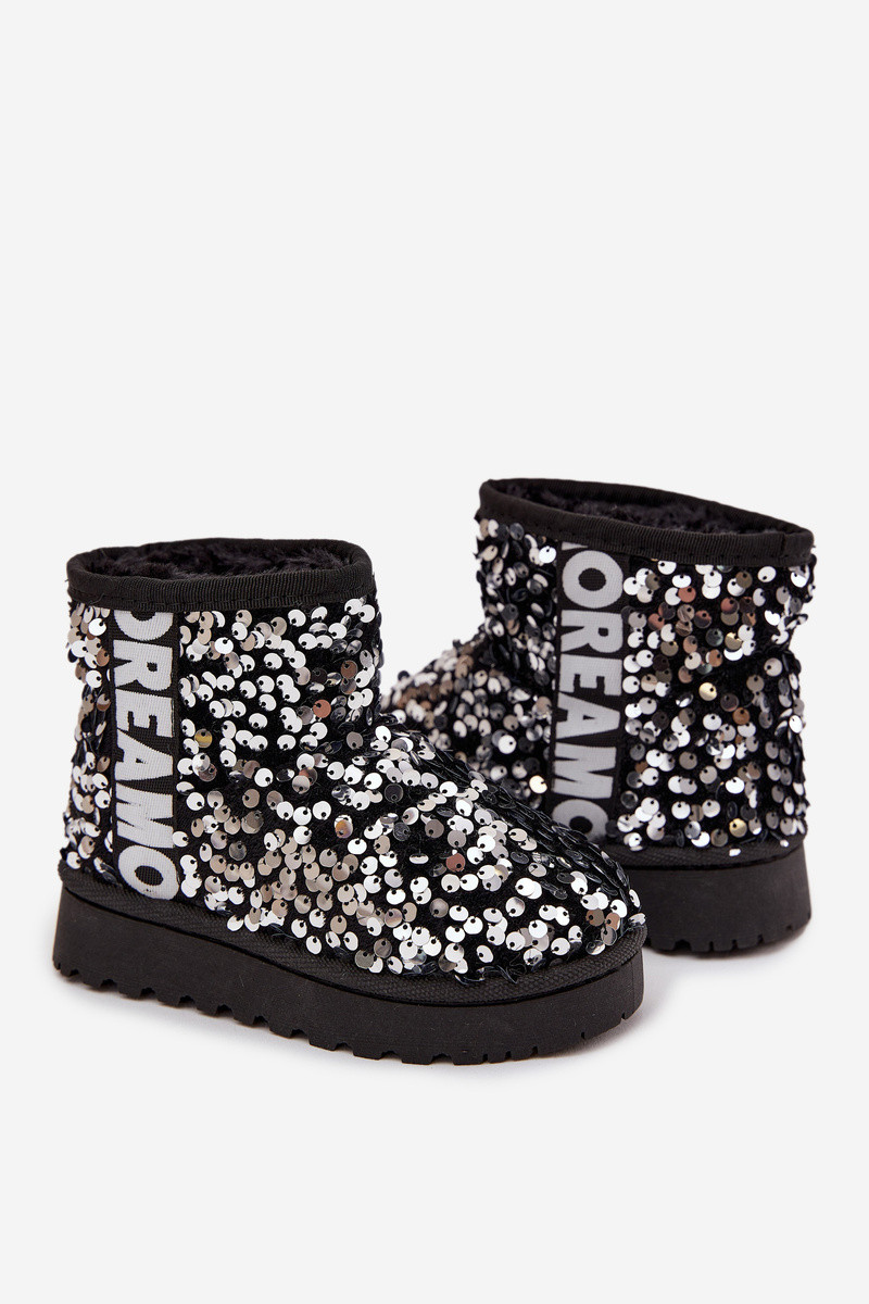 Kinder sneeuwlaarzen met voering en glinsterende schubben in zwart en zilver Rebbica