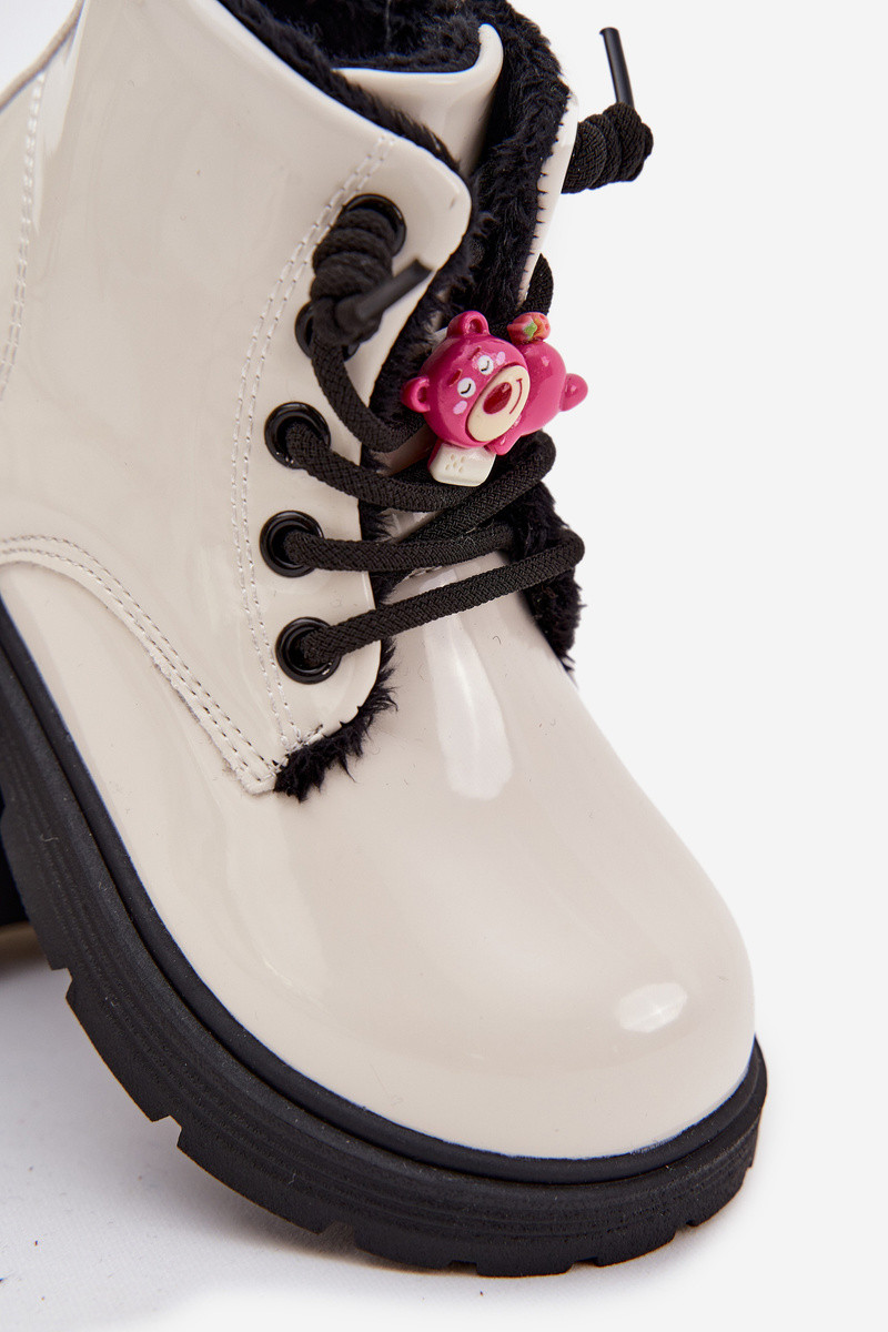 Kinderen verwarmde witte enkellaarsjes met lak-effect en beren Jovellea