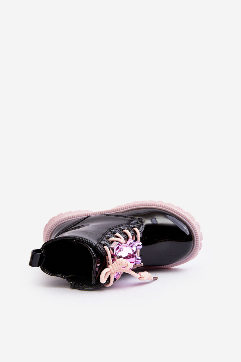 Kinderen enkellaarsjes Bunnyjoy met lak-effect en ornamenten in zwart en roze kleur